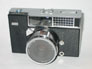 C'est le premier modèle de Focasport. Objectif Néoplar 3.5/4.5cm avec obturateur à deux pales et armement par bouton. Le film est maintenu sur les picots par un rouleau.