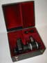 Voici un appareil particulier construit par OPL à partir d'un boîtier Focasport 2ème série pour la microphotographie. L'ensemble est présenté dans un coffret permettant le rangement